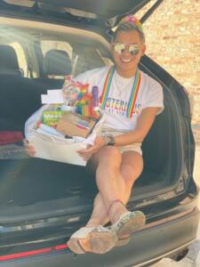The campaign culminated in the virtual Housing Our Future Watch Party, presented by Noble Energy, on Friday, September 25. The celebratory event streamed exclusively for donors and volunteers of the campaign. The show is available to the public for a limited time here. Before the show, volunteers delivered watch party packs to those participating at sponsorship levels. The packs included lots of rainbow surprises, Stoli Vodka, and treats from Michael’s Cookie Jar.