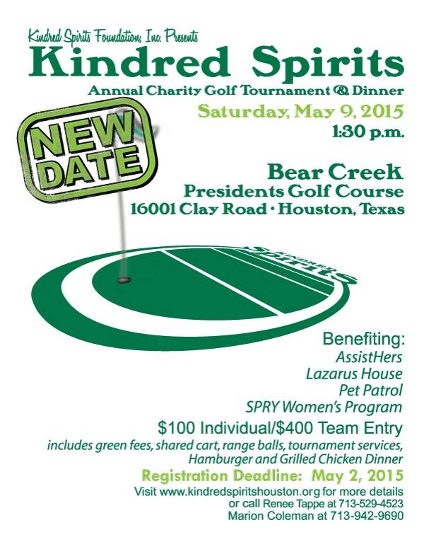 Golfers of all handicaps are welcome to join the fun at the Kindred Spirits Annual Golf Tournament and Dinner, held at Bear Creek Presidents Golf Course on Houston’s far northwest side.