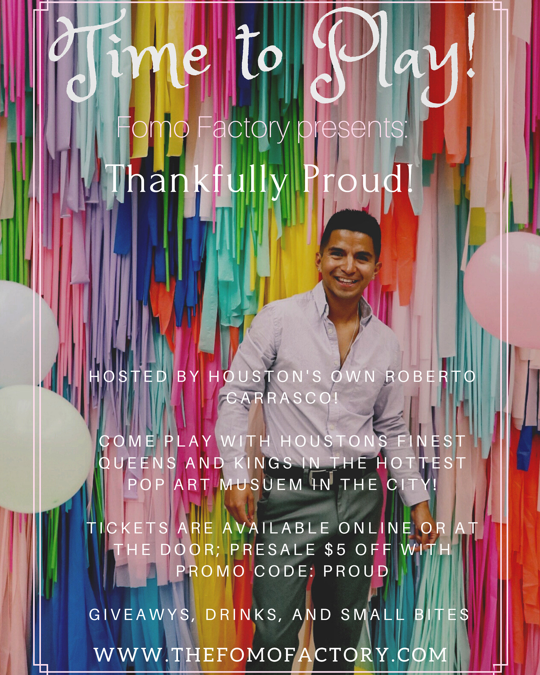 November 21st is Thankfully Proud Night at The FOMO Factory hosted by Roberto Carrasco!