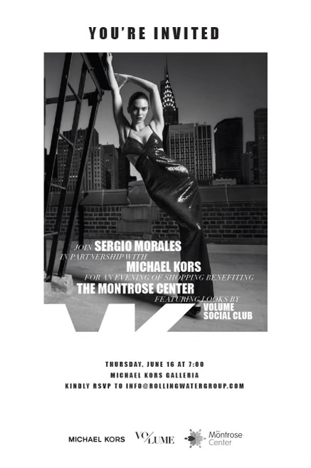 Join Sergio Morales for a Sip + Shop at Michael Kors on Thursday, June 16 at 7 PM! Sergio will be selecting a few of his favorite summer looks to showcase, and some proceeds from the evening will go to the Montrose Center!