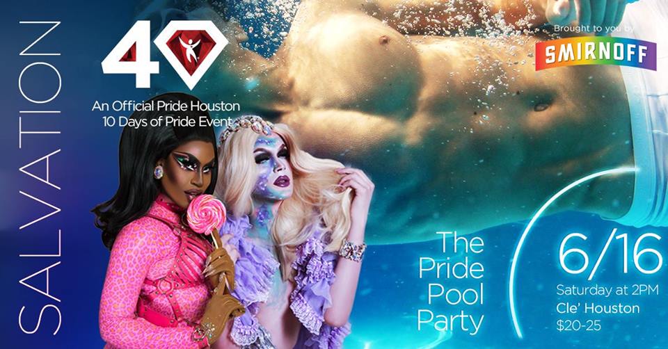 Join Pride Houston for Salvation, the official Pride Pool Party, as it returns bigger, better, and hotter than ever. 3 DJs. 2 Queens. 1 Amazing Pool.