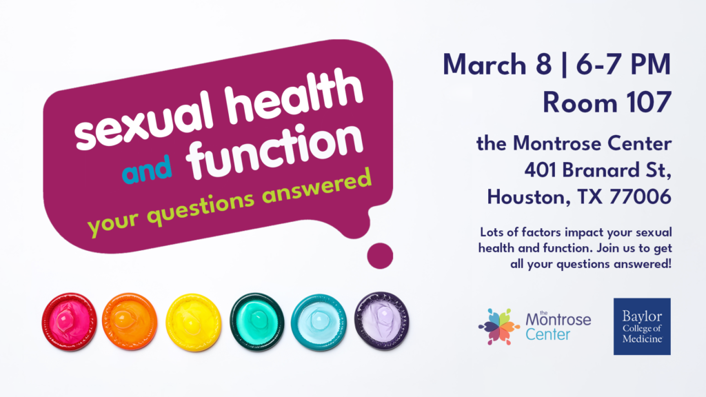 Join us and medical students from Baylor College of Medicine Urology Interest Group and Psychiatry Interest Group to learn about common factors involved in sexual dysfunction and available treatment options, including how different medications and psychological factors may impact sexual function.