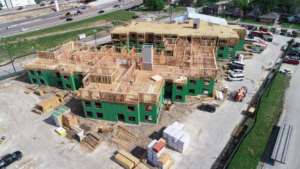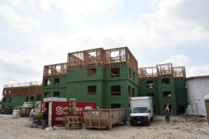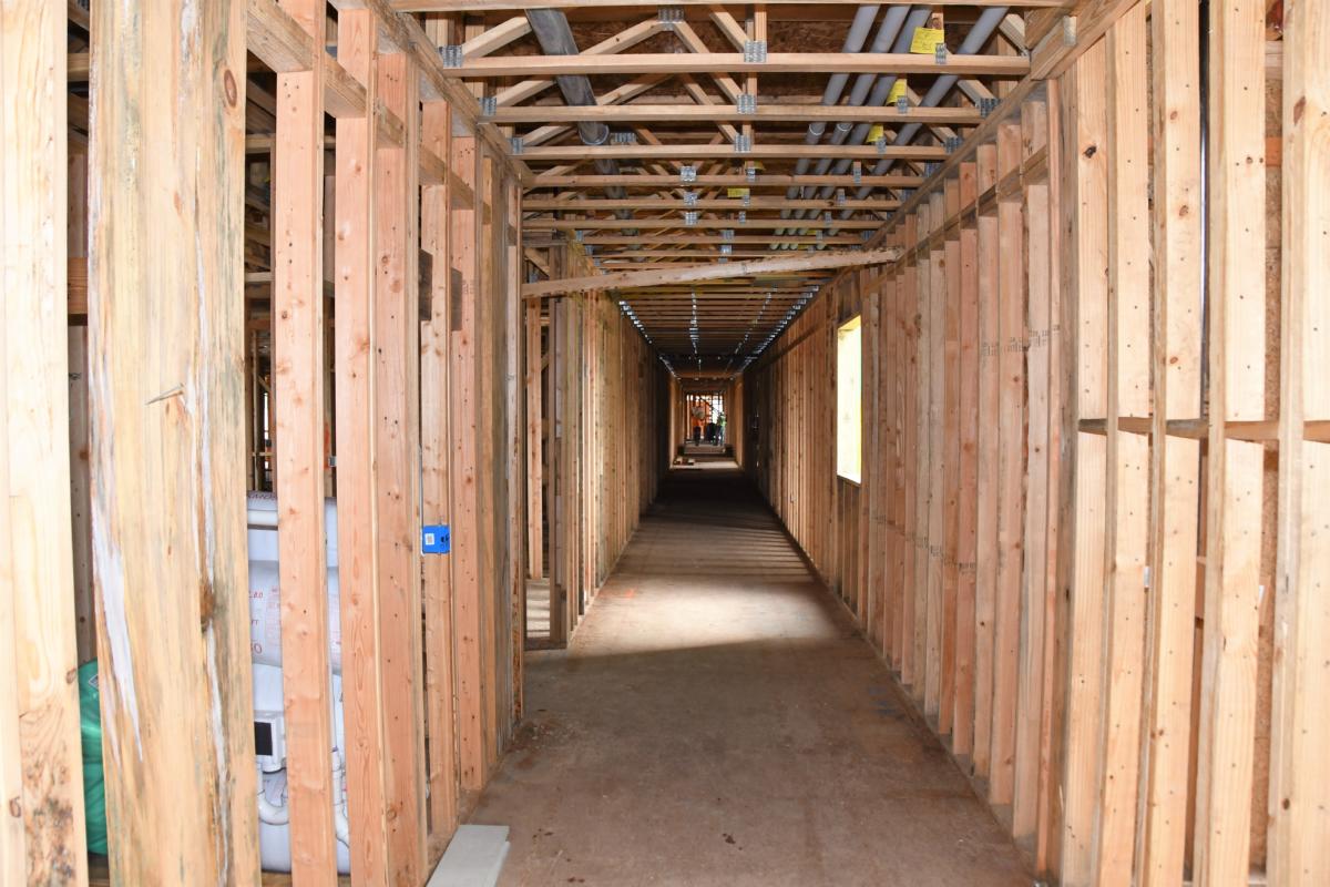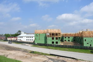 Framing for the one and two-bedroom independent living apartments has also made considerable progress. Work has begun on the fourth floor of building one while the third floor of building two is almost complete.