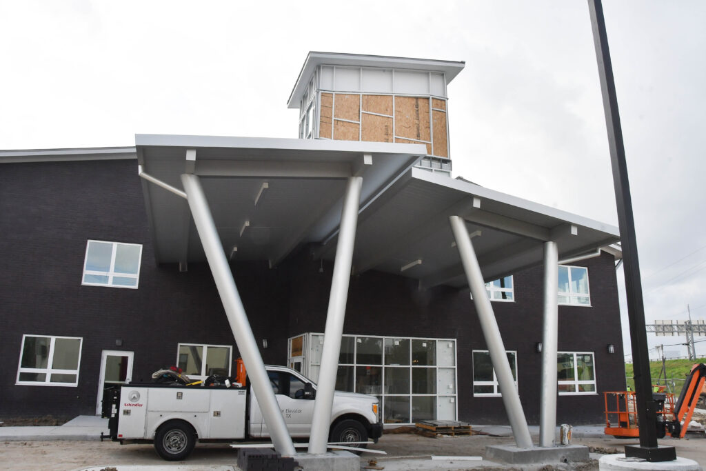 Compared to our September update, there has been much progress made at the Center. Externally, you can see patios, walkways, curbs, fencing, and other exterior finishes coming together. You can also see windows and doors installed at the entrance.