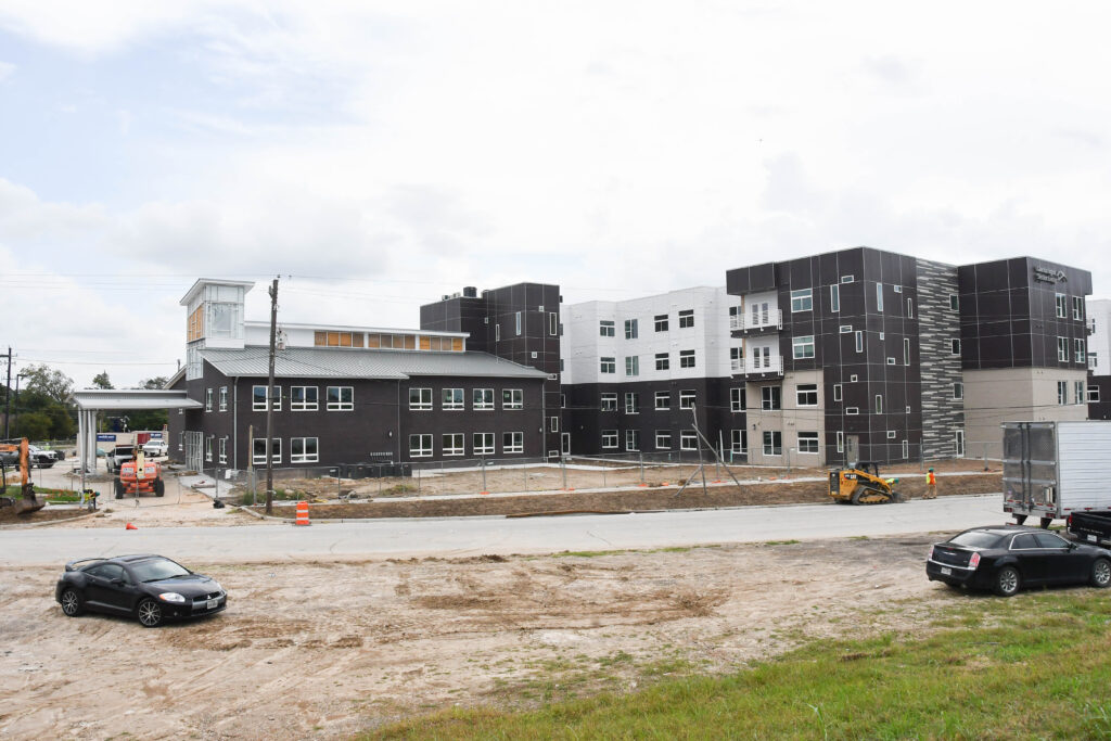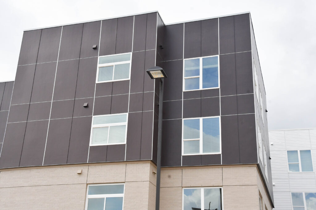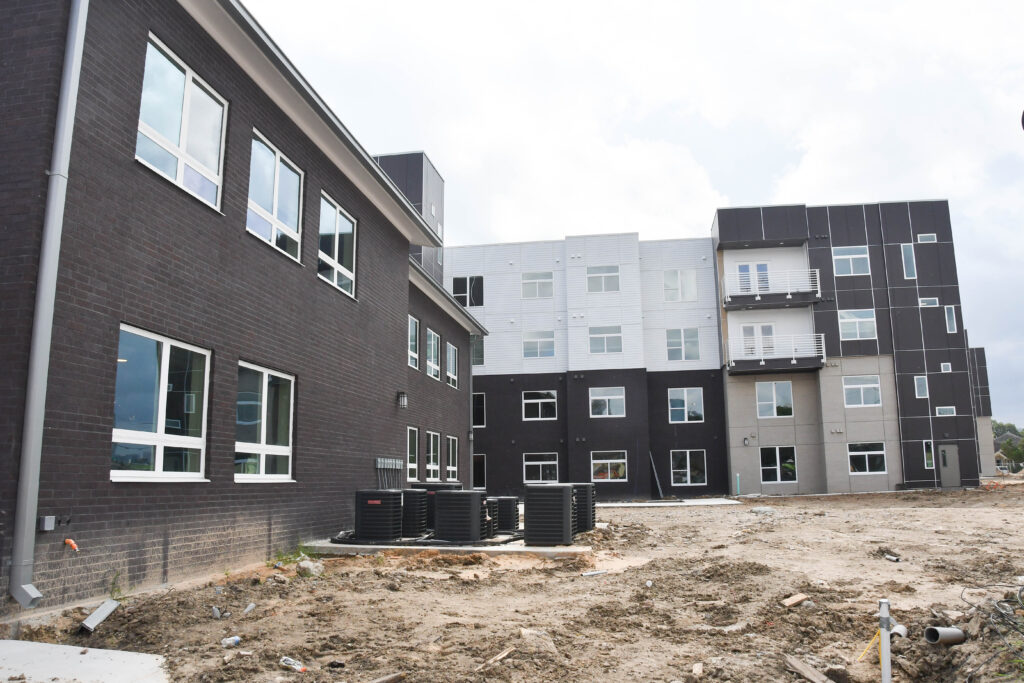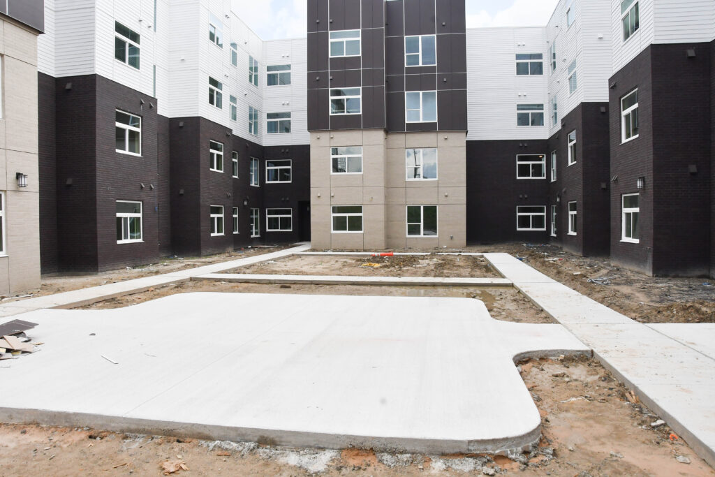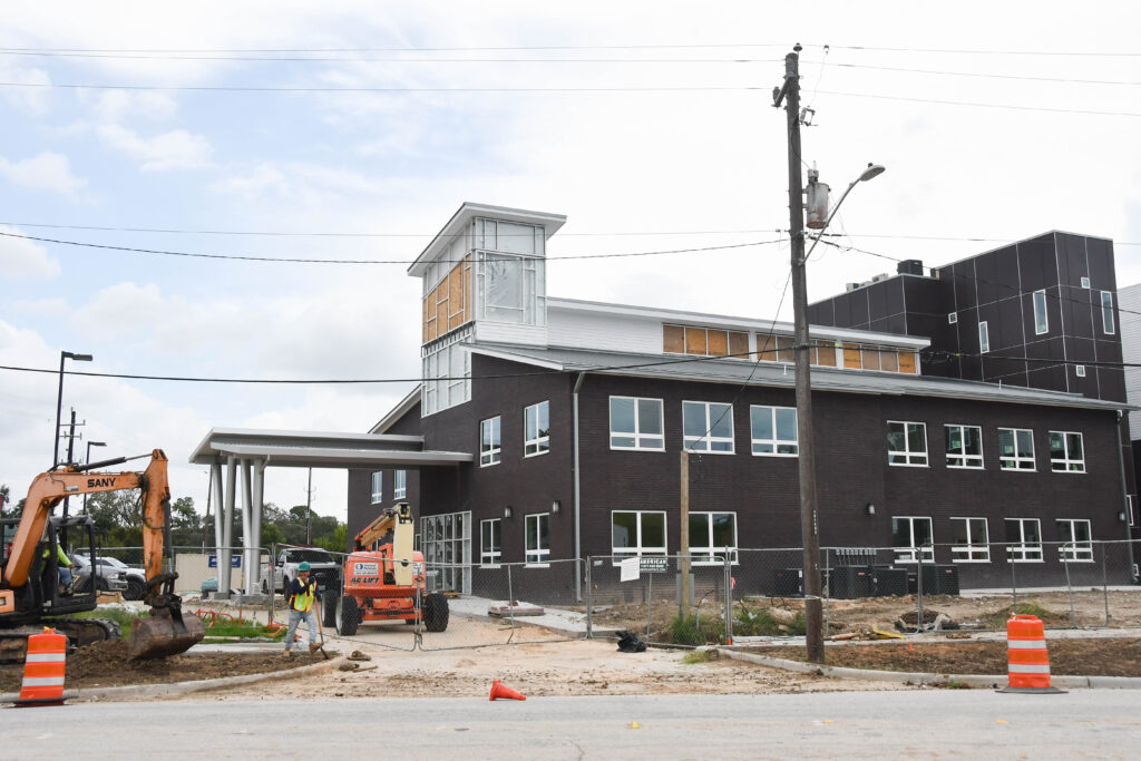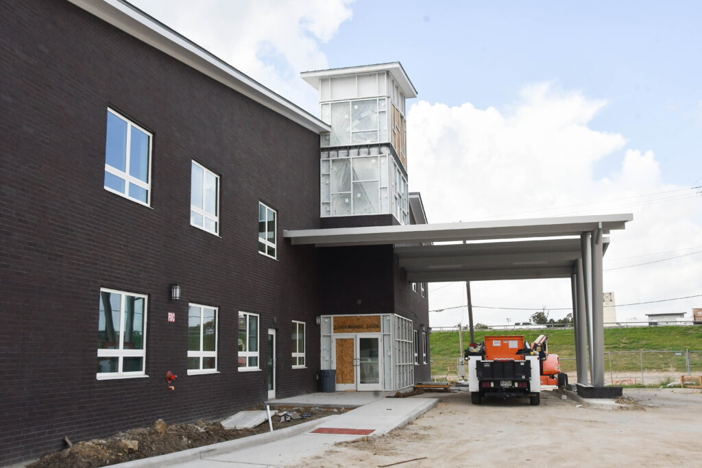 Compared to our September update, there has been much progress made at the Center. Externally, you can see patios, walkways, curbs, fencing, and other exterior finishes coming together. You can also see windows and doors installed at the entrance.