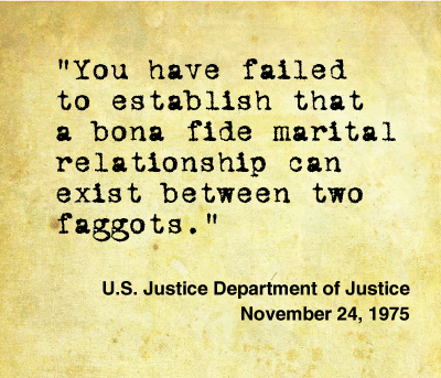 This documentary is about one of the first same-sex couples in the world to be legally married. Decades before The Defense of Marriage Act and Proposition 8, one gay couple, a Filipino American and an Australian, fell in love and over the course of 40 years took on the U.S. government to fight for marriage and immigration equality.