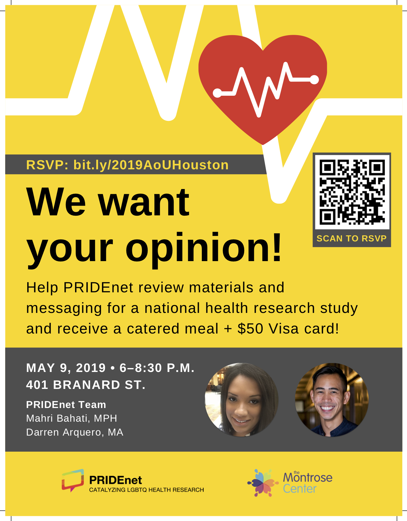 the Montrose Center 401 Branard St., HoustonDinner is on us! Participate in an LGBTQ community review session with our friends at The PRIDE Study on May... Read More »