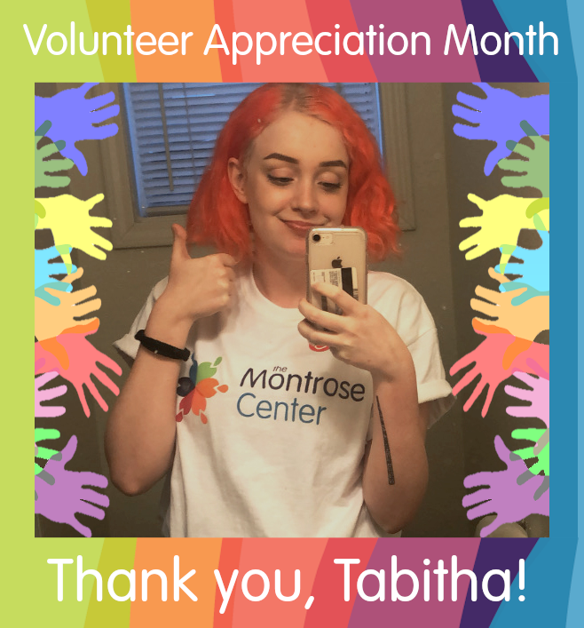 “I volunteer for two main reasons. The first, a little selfish I’ll admit, is to meet new people and become more connected in my community. After volunteering at Gender Infinity, a conference centered around the gender spectrum, for the first time in 2018, I realized how tucked away I was from Houston’s vast LGBTQ community. I decided I needed a place I could volunteer more than just once a year. The Montrose Center is the best place for that! The second reason I volunteer is to give back to the community and the Center. The Center has provided me with countless resources since I learned about it in my junior year of high school. Likewise, the LGBTQ+ community has always had open arms when I’ve needed it. I’ve been able to learn so much about myself through the support and experience of others. I volunteer with the hope of offering that same kindness to others. Huge thank you to the Montrose Center for providing a safe environment for everyone to learn and grow!”