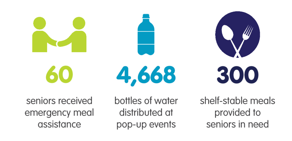 • Provide emergency meal assistance to 60 seniors to help them get through the week, totaling 300 shelf-stable meals